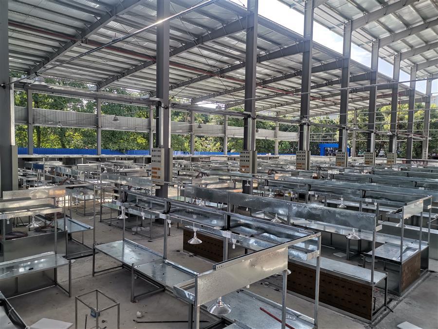 9月21日,在第十分公司承建的柳州市桂中商城改造過(guò)渡市場(chǎng)項(xiàng)目施工現(xiàn)場(chǎng),100多名施工人員堅(jiān)守崗位,趕工期,搶進(jìn)度。目前,該項(xiàng)目道路已全部硬化,鋼結(jié)構(gòu)安裝工程完成90%,門(mén)窗安裝完成60%,水電安裝完成90%。