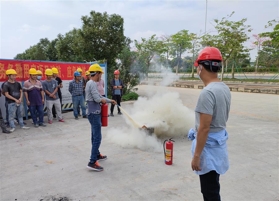 本次活動分為消防知識培訓(xùn)和消防演練兩部分。演練開始前,項目管理人員向參培人員講解消防知識,并展示滅火器的使用方法以及使用滅火器救火的要點。演練中,參培人員在管理人員的指導(dǎo)下分組進(jìn)行實地消防滅火演練,大家積極動手迅速掌握了利用干粉滅火器進(jìn)行滅火的技巧,演練取得良好效果。