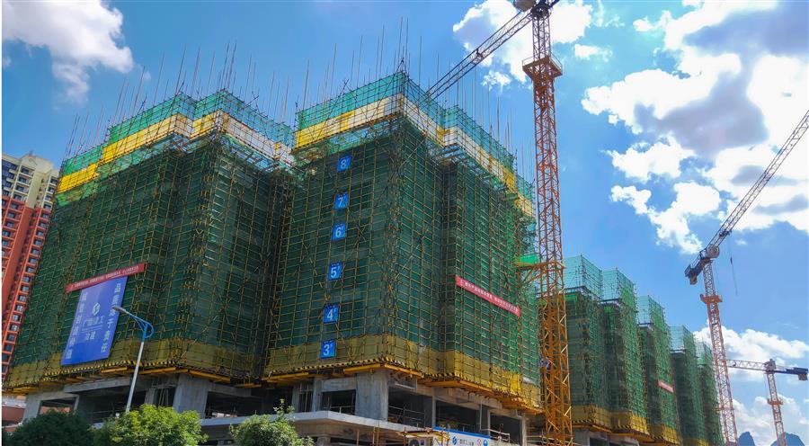 該工程位于河池市金城江區(qū)百旺路10號,總建筑面積約為6.76萬平方米,由地庫、4棟、5棟及配套設(shè)施工程等部分構(gòu)成。目前,4棟主體結(jié)構(gòu)完成至8層,5棟主體結(jié)構(gòu)完成至9層,項目累計完成工程總量52.68%。