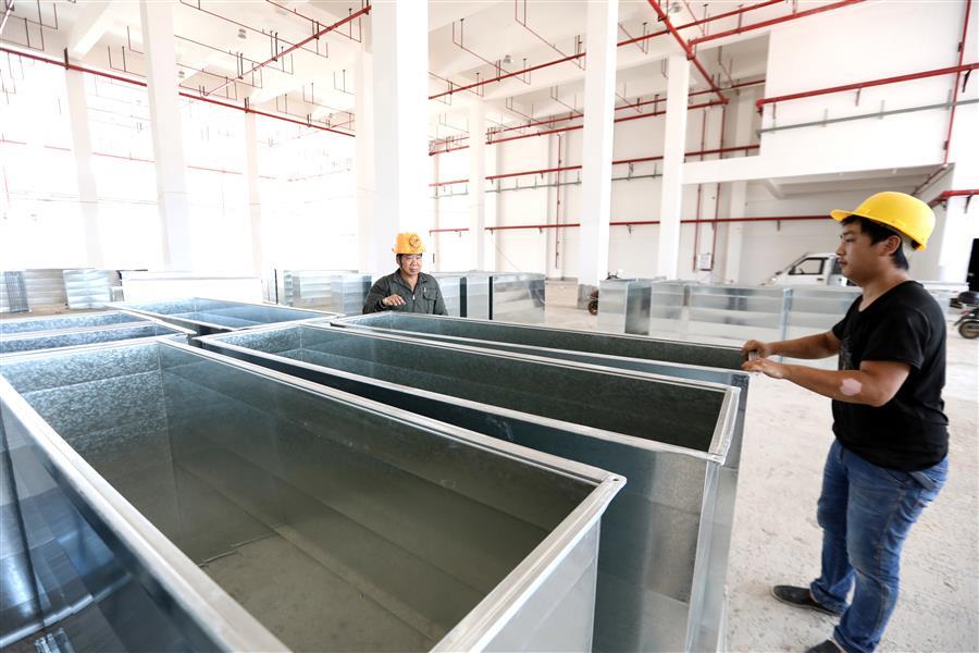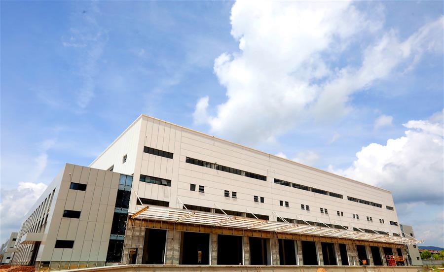 該項目負責人莫劍生介紹,倉儲配一體庫主要建設(shè)6棟庫房,目前項目主體基本建成,正緊張有序收尾。為了加快項目進度,項目部在做好防暑降溫、安全施工等保障措施的同時,采取多班組、多工種在不同的庫房交叉作業(yè),目前工地上有七八個班組在施工,施工內(nèi)容包括外立面、擋雨棚、通風管、地面硬化施工等。