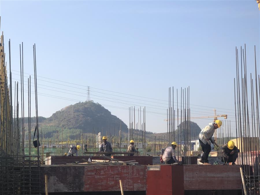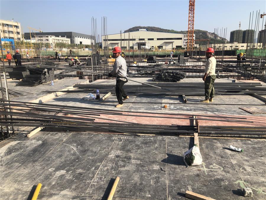 該項目是柳州市重點項目,總建筑面積為8.7萬平方米。目前靜壓樁施工已全部完成;1號樓E區(qū)頂板完成;H區(qū)底板完成;F區(qū)與G區(qū)底板防水保護層完成;2號樓A區(qū)二層模板安裝完成,D區(qū)負(fù)一層滿堂架搭設(shè)完成。