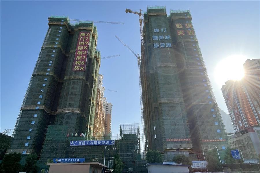 河池·澳門國際城四期工程總建筑面積13.76萬平方米,由4#樓5#樓、地庫以及配套設(shè)施工程和1#樓2#樓3#樓工程兩大部分組成。該項目按照既定的節(jié)點全面鋪開施工,既抓嚴(yán)抓細(xì)抓好關(guān)鍵環(huán)節(jié)施工管理,又積極主動推進項目創(chuàng)優(yōu)工作,確保施工生產(chǎn)與項目創(chuàng)優(yōu)兩不誤。據(jù)了解,4#樓5#樓外架拆除均至15層;地下室分部工程水電消防安裝已接近收尾。1#樓磚砌體完成至22層,2#樓磚砌體完成至27層,3#樓磚砌體已完成、二次結(jié)構(gòu)施工至24層。2023年,本項目先后獲得河池市建筑施工安全文明工地、廣西建設(shè)工程安全文明標(biāo)準(zhǔn)化工地等榮譽。