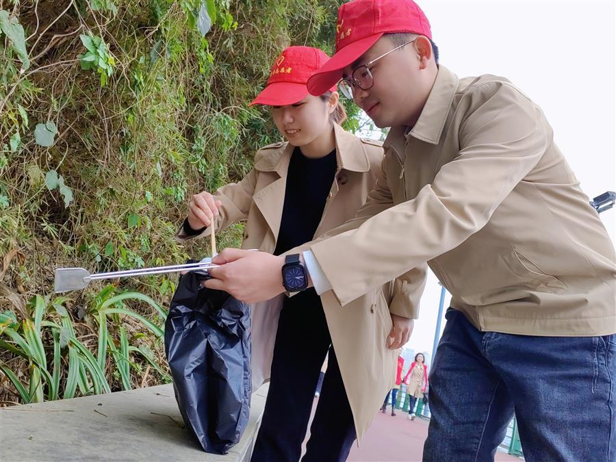 活動(dòng)中,志愿者們手持垃圾鉗、垃圾袋,沿著環(huán)江濱水步道開展“垃圾清零”活動(dòng),仔細(xì)地?fù)焓把匕兜睦?,維護(hù)江堤的環(huán)境衛(wèi)生。