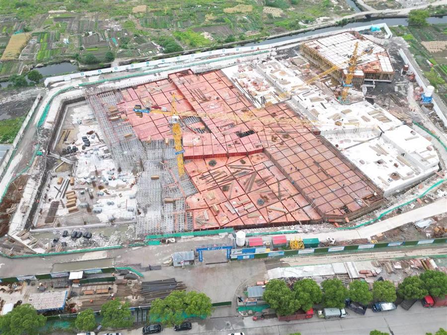 紹興市柯橋區(qū)華舍小學(小赭小學)新建工程(一期)項目主要建設內(nèi)容包括新建綜合教學樓、專用教學樓、綜合行政樓、風雨操場、食堂、報告廳、地下室等,同時根據(jù)教學需要和學校文化建設的要求進行校園裝修及配置相關設施,建筑面積約為3.74萬平方米,工期540日歷天。目前,項目1#樓(食堂、報告廳)一層頂板梁筋綁扎完成,PC構件吊裝中;地下室支撐梁拆除完成,地下室三區(qū)土方回填完成、鋼板樁拔除完成;地下室一區(qū)至三區(qū)頂板澆筑完成,地下室四區(qū)至十區(qū)頂板模板安裝、鋼筋綁扎中,地下室十一區(qū)盤扣架安裝中,地下室坡道墊層澆筑完成。