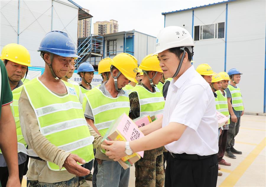 7月27日、28日,冶建公司總經(jīng)理、黨委副書記蒙勝益先后到深圳分公司承建的羅城硅晶新材料研發(fā)開發(fā)制造一體化項目(一期),第四分公司承建的柳州市河表片區(qū)標準廠房(一期)項目,開展“送清涼”慰問活動,為堅守在項目一線的建設者送去公司的關(guān)懷和防暑降溫物資。