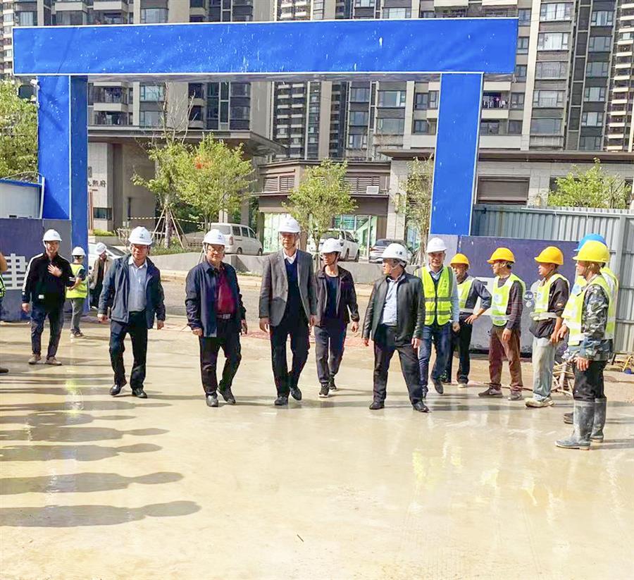在聽(tīng)取分公司及項(xiàng)目部的匯報(bào)后,何勇深入項(xiàng)目施工現(xiàn)場(chǎng),認(rèn)真查看了落地式腳手架、臨時(shí)用電、模板支架、安全文明施工等情況,并對(duì)項(xiàng)目的建設(shè)進(jìn)度表示肯定。