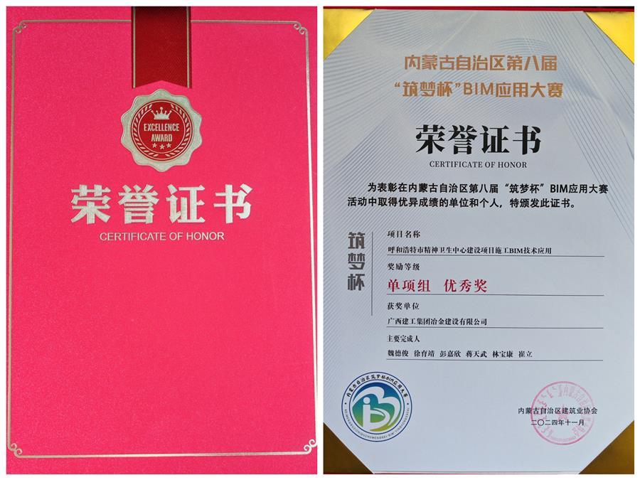 近日,內(nèi)蒙古自治區(qū)建筑業(yè)協(xié)會公布表彰決定,冶建公司第五分公司承建的呼和浩特市精神衛(wèi)生中心建設(shè)項目工程榮獲內(nèi)蒙古自治區(qū)第八屆“筑夢杯”BIM應(yīng)用大賽優(yōu)秀獎。