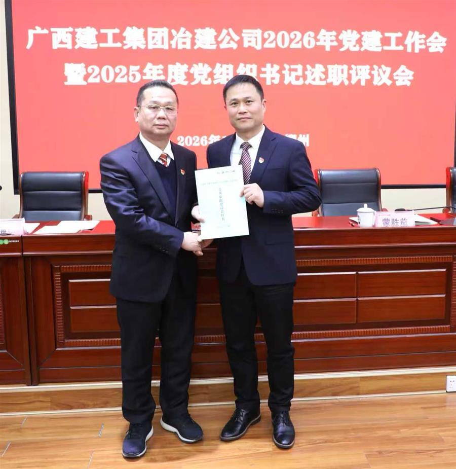 1月23日,冶建公司2026年黨建工作會暨2025年度黨組織書記述職評議會在第二會議室召開。公司黨委書記、董事長覃振華參加并講話,黨委副書記、總經(jīng)理蒙勝益?zhèn)鬟_(dá)集團(tuán)公司2026年黨建工作會暨2025年度黨組織書記述職評議會精神,黨委副書記、紀(jì)委書記、工會主席賴海標(biāo)主持,領(lǐng)導(dǎo)班子成員廖立波、阮仁勝、韋克雪、葉益華參加。