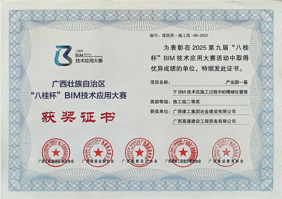 3月20日,2026年全區(qū)建筑信息模型(BIM)應(yīng)用交流會暨第九屆“八桂杯”BIM技術(shù)應(yīng)用大賽頒獎(jiǎng)在柳州舉行。冶建公司基礎(chǔ)分公司申報(bào)的一課題,憑借出色的BIM技術(shù)應(yīng)用水平與管理成效,榮獲施工組建筑類二等獎(jiǎng)。