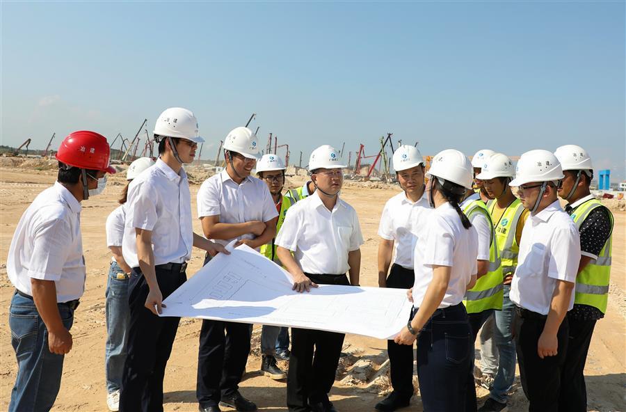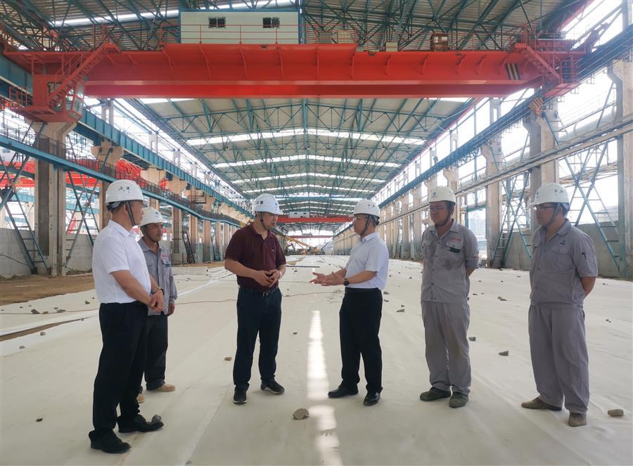覃振華在防城港鋼鐵基地項(xiàng)目(一期)廢鋼處理系統(tǒng)金屬材料加工配送中心廠房及公輔設(shè)施建設(shè)項(xiàng)目現(xiàn)場(chǎng)了解情況