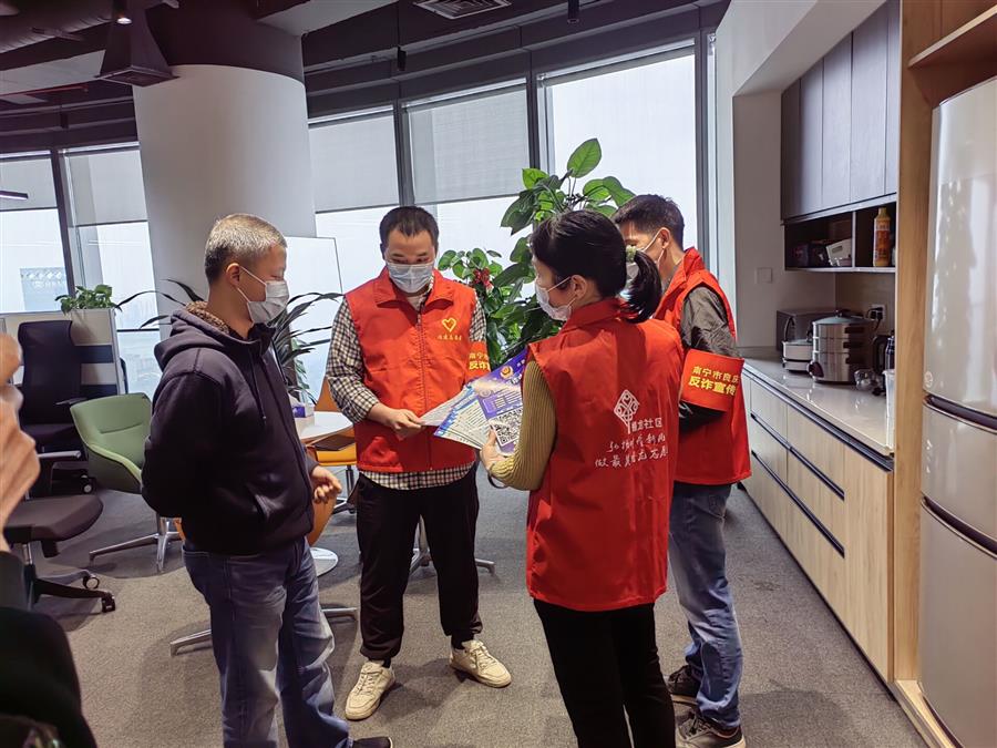 南寧片區(qū)各團支部聯(lián)合開展“弘揚時代新風尚 志愿服務我先行”反詐宣傳活動。