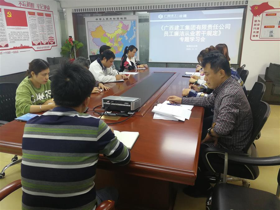 近日,南寧分公司組織召開廉潔從業(yè)會(huì)議,學(xué)習(xí)《廣西建工集團(tuán)有限責(zé)任公司員工廉潔從業(yè)若干規(guī)定》等文件。