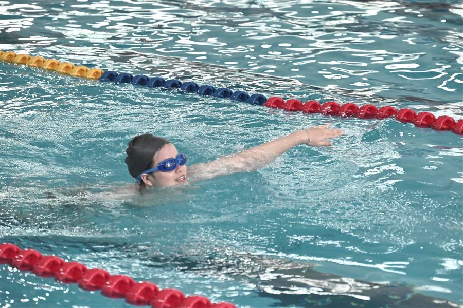 決賽環(huán)節(jié),運動員們紛紛向最后的勝利發(fā)起沖刺,泳道內(nèi)大家激情澎湃、斗志昂揚,泳池旁啦啦隊的加油助威聲此起彼伏,比賽的氣氛被推至高潮。
