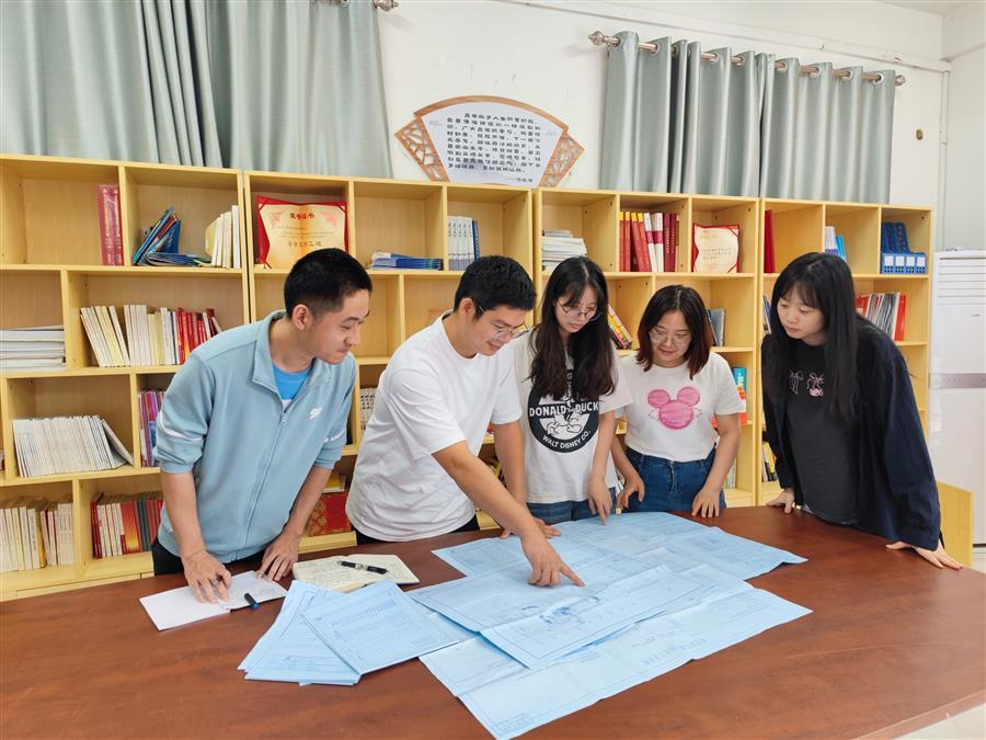 李年歡帶領(lǐng)團(tuán)隊(duì)研究圖紙